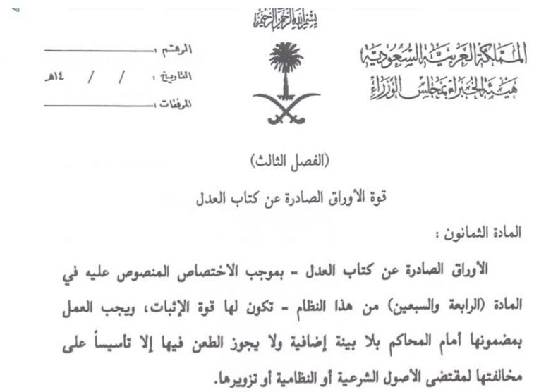 د عبدالله الجريش On Twitter نص نظام القضاء في المادة الثمانون ان الأوراق الصادرة عن كتاب العدل تكون لها قوة الإثبات ويجب العمل بمضمونها أمام المحاكم بلا بينة إضافية ولا يجوز الطعن فيها