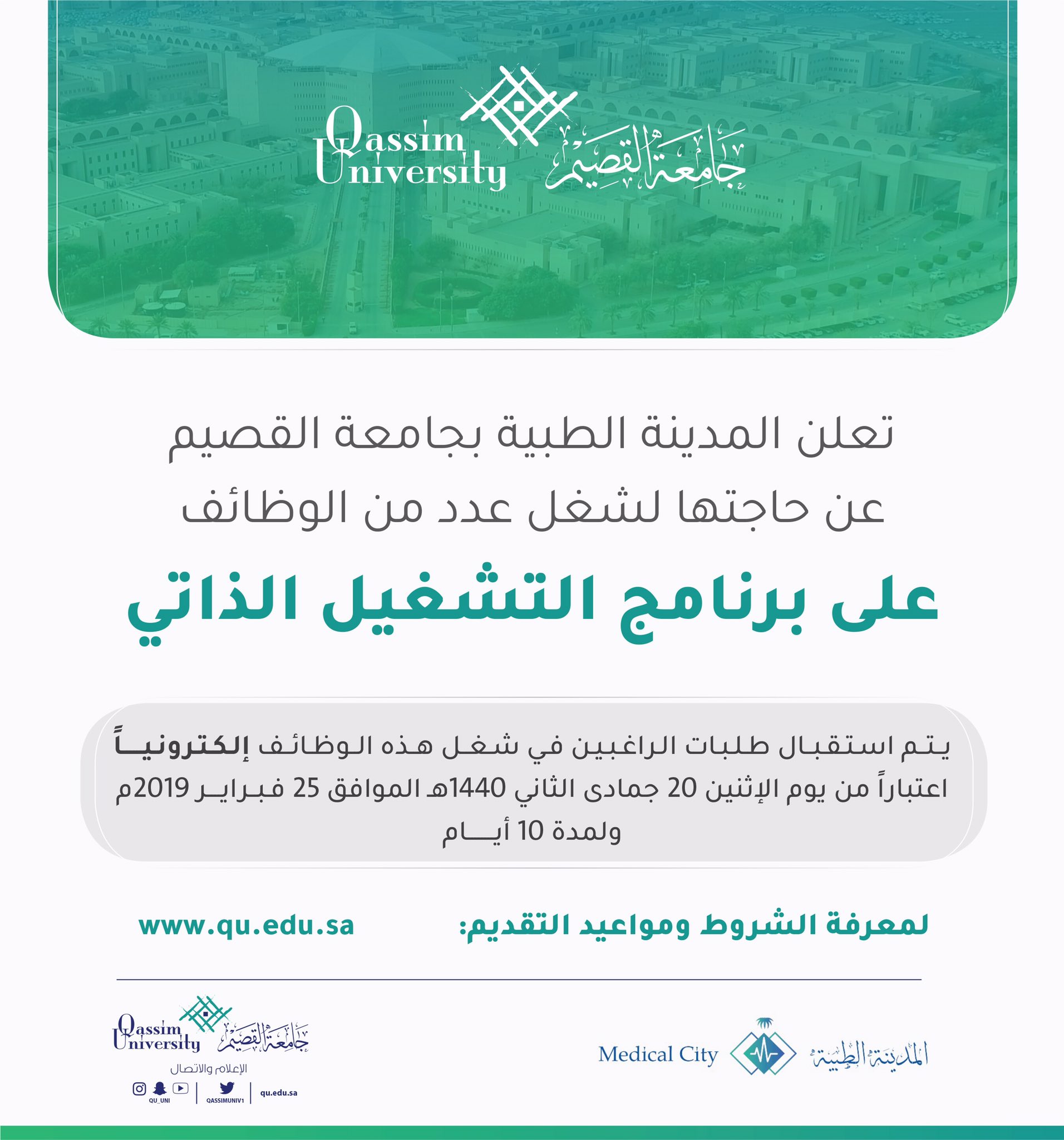 جامعة القصيم تعلن عن وظائف على برنامج التشغيل الذاتي بالمدينة الطبية صحيفة الخليج الإلكترونية