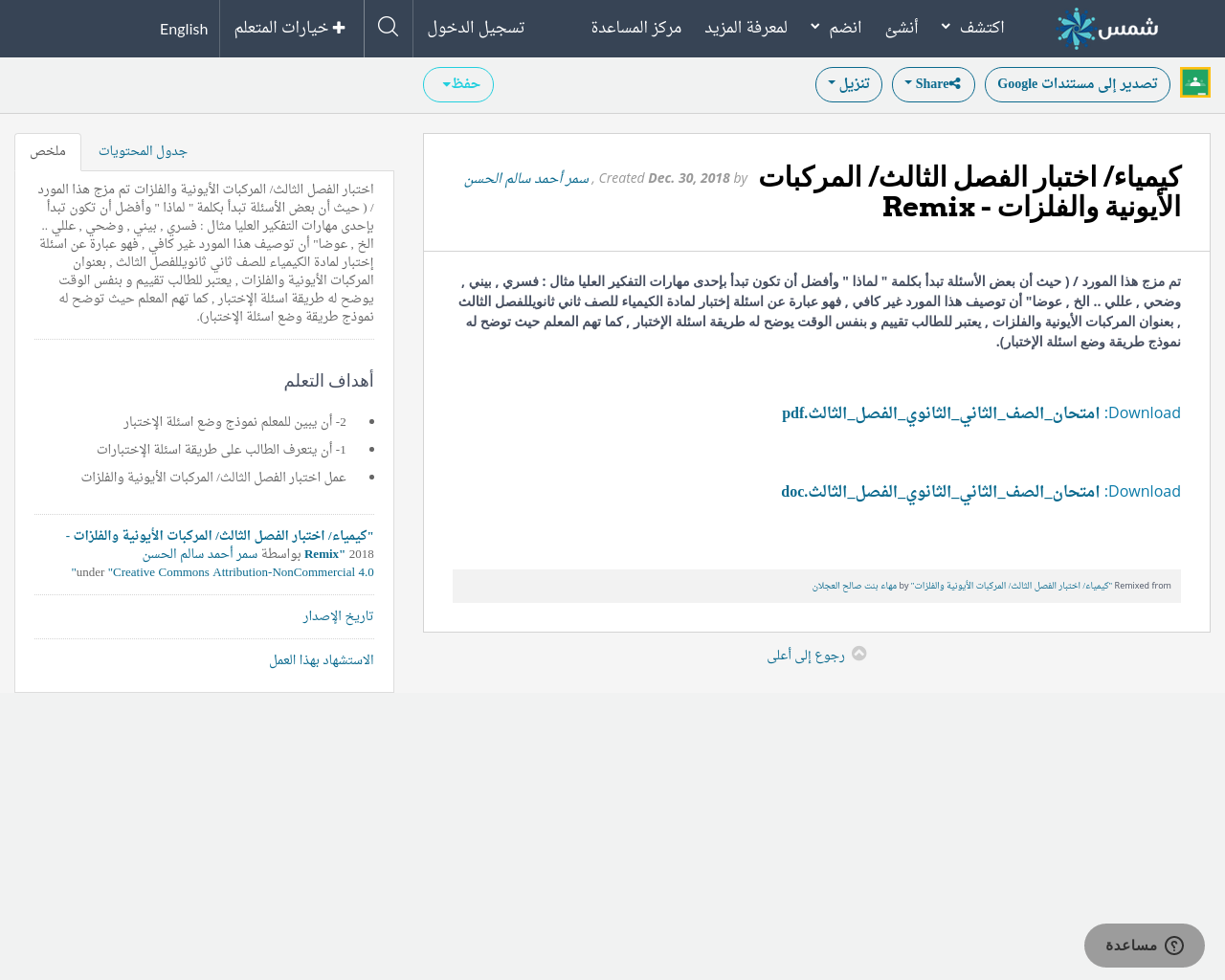 كيمياء اختبار الفصل الثالث المركبات الأيونية والفلزات Remix Shms Saudi Oer Network