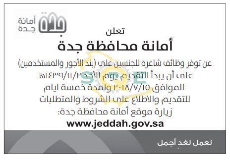 وظائف شاغرة على بند الأجور والمستخدمين بـ أمانة جدة صحيفة غراس الالكترونية